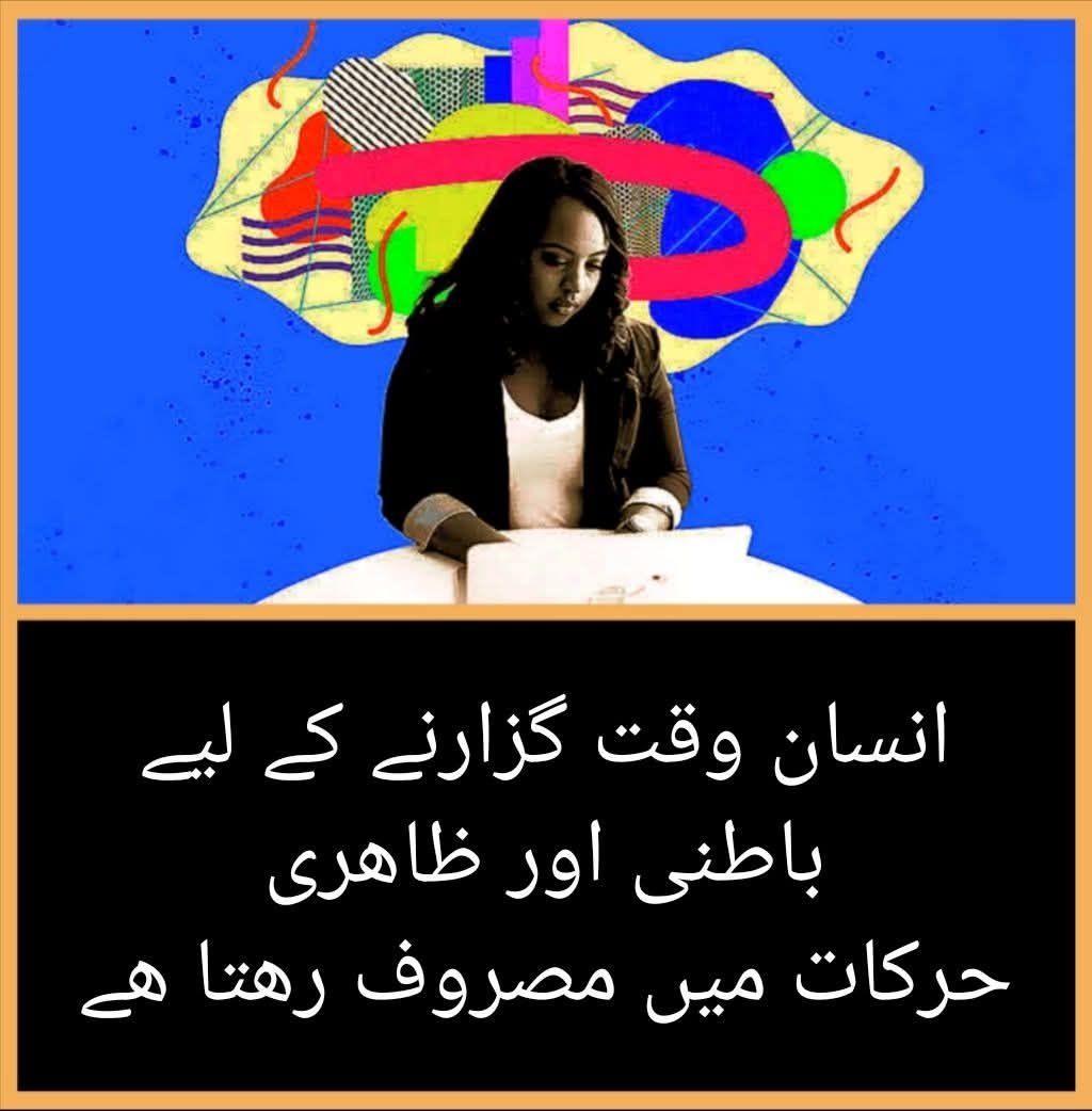 وقت گزارنے کے لیے ھر جاگتا انسان باطنی حرکات اور ظاھری حرکات کرنے میں مصروف رھتا ھے۔