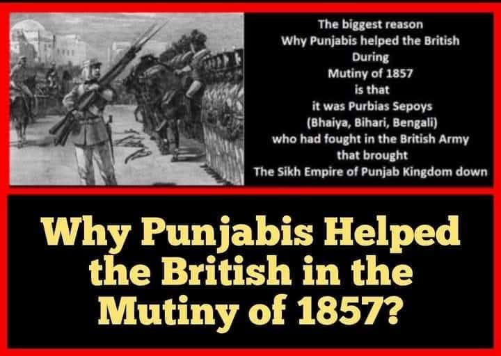 The Anglo-Sikh Wars (1845–49) profoundly shaped Punjabi political memory. The annexation of the Sikh Empire, especially after bloody battles like Chillianwala and Ferozpur, was facilitated by the British reliance on Purbia troops—mainly Bihari and Awadhi soldiers in the Bengal Army. These same troops later spearheaded the 1857 rebellion.