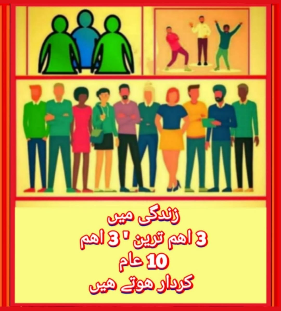 زندگی میں 3 اھم ترین 3 اھم اور 10 عام کردار ھوتے ھیں۔