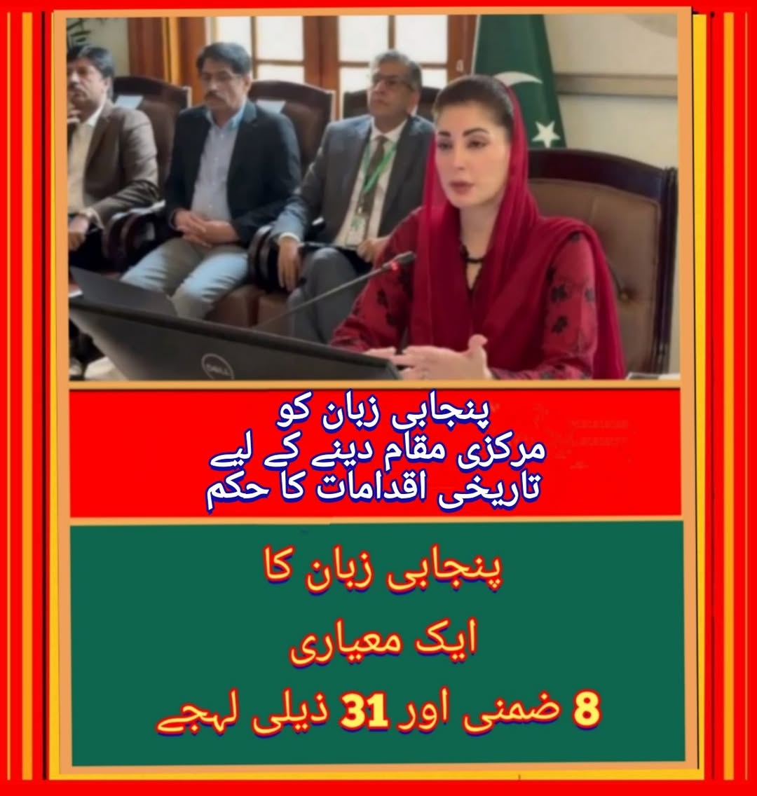 وزیرِ اعلیٰ پنجاب مریم نواز نے تعلیم ‘ ثقافت اور عوامی زندگی میں پنجابی زبان کو مرکزی مقام دینے کے لیے تاریخی اقدامات کا حکم دے دیا۔
