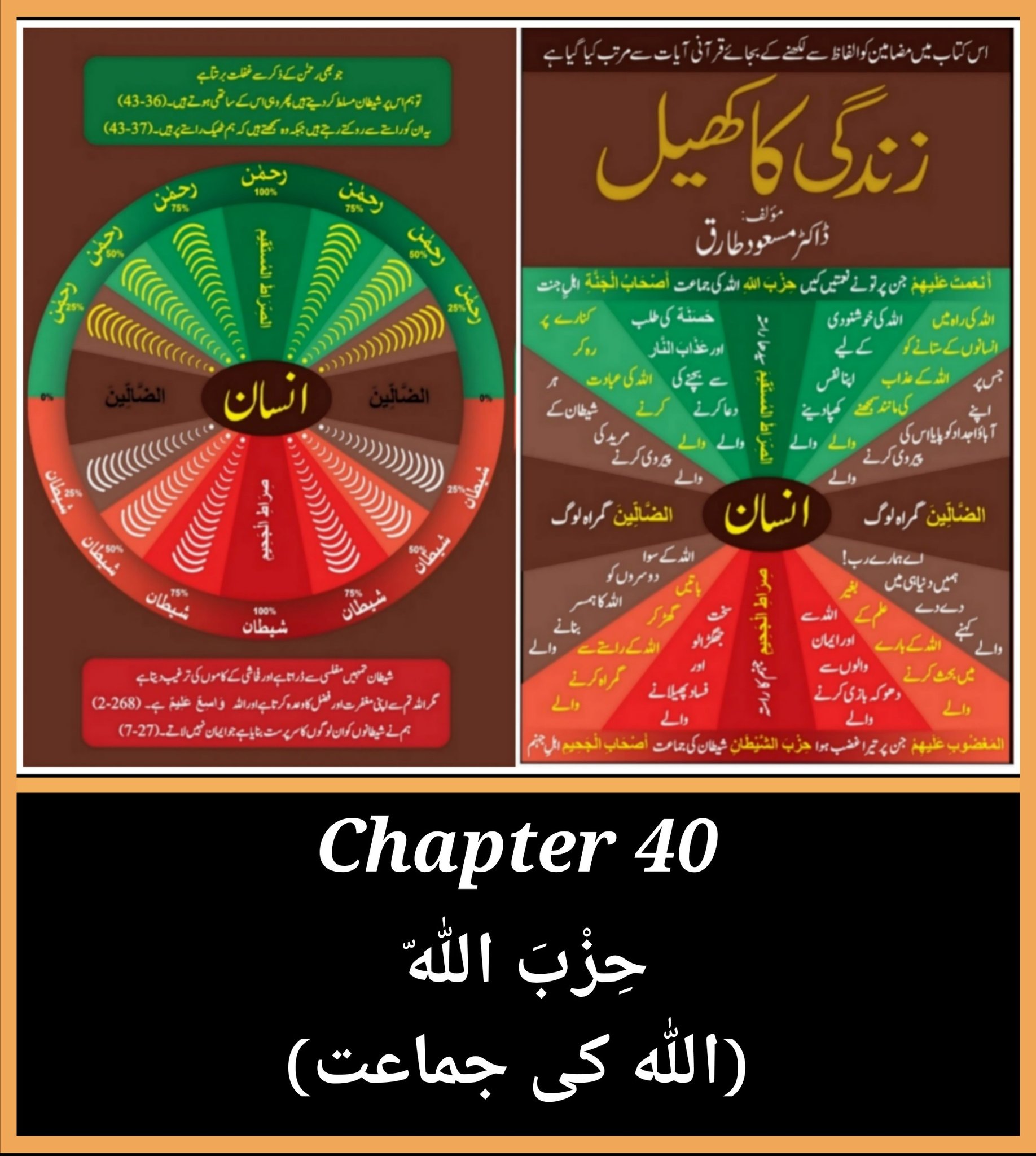 وہ لوگ جو الله کی اور اس کے رسول کی مخالفت کرتے ہیں وہ ذلیل لوگوں میں سے ہیں۔ (20-58) الله نے لکھ دیا ہے کہ میں اور میرے رسول ضرور غالب آکر رہیں گے۔ بیشک الله قَوِيٌّ عَزِيز ہے۔ (21-58) وہ جو کہ اللہ پر اور آخرت کے دن پر ایمان رکھتے ہیں تم ان کو ان لوگوں سے محبت کرتے ہوئے نہیں پاؤ گے جنہوں نے مخالفت کی اللہ کی اور اس کے رسول کی اگرچہ وہ ان کے باپ یا ان کے بیٹے یا ان کے بھائی یا ان کے خاندان کے لوگ ہی ہوں۔ یہ وہ لوگ ہیں کہ ان کے دلوں میں الله نے ایمان تحریر کردیا ہے اور ان کی اپنی روح سے مدد کی ہے اور وہ انہیں ایسی جنّتوں میں داخل کرے گا کہ ان میں نہریں بہہ رہی ہیں ہمیشہ ان میں رہیں گے۔ الله ان سے راضی ہوا اور وہ اس سے راضی ہوئے۔ یہ لوگ حِزْبَ اللّه ہیں۔ سو یہ حِزْبَ اللّه ہی فلاح پانے والی ہے۔ (22-58)