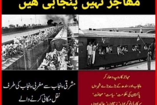مشرقی پنجاب سے مغربی پنجاب آنے والے مھاجر نہیں پنجابی ھیں۔